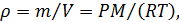 де R = 8310 Дж/(кмоль∙К) - універсальна газова стала, P, T і M - відповідно тиск, температура і молекулярна маса газу.
