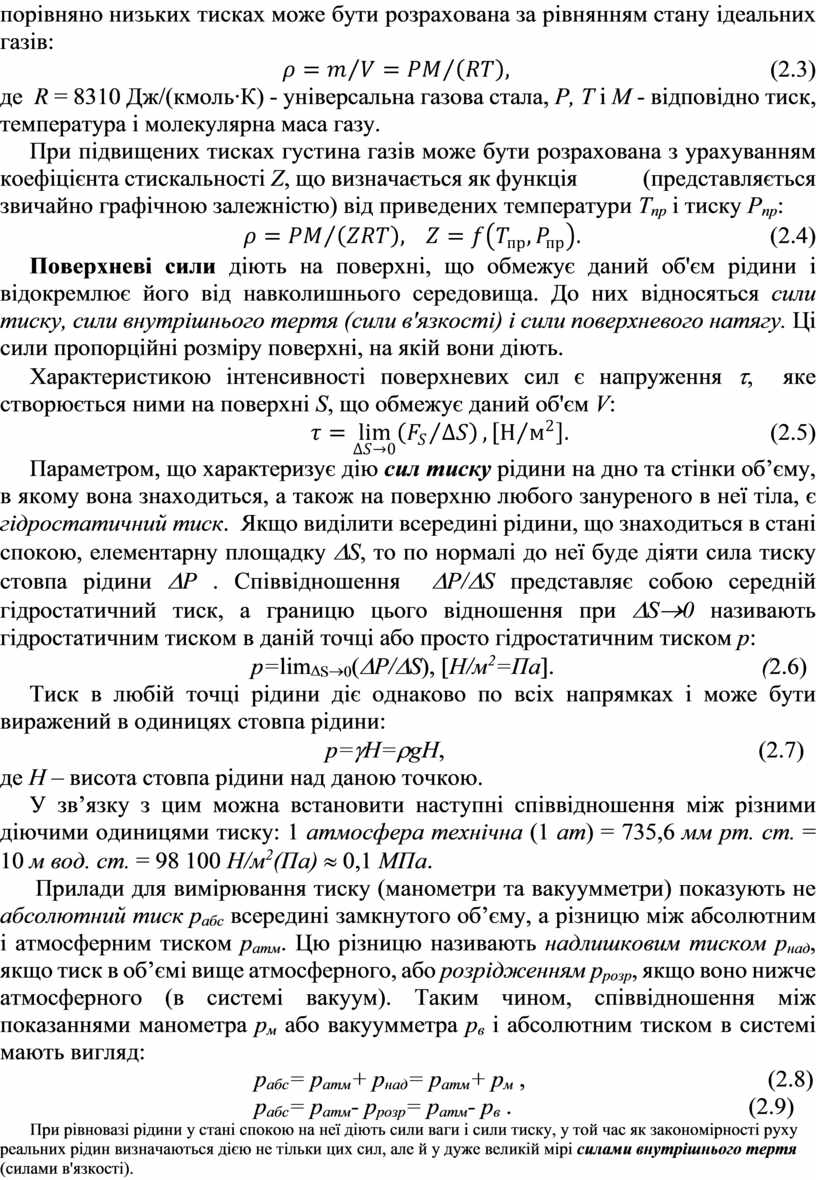 Питома вага і густина краплинних рідин мало залежать від тиску і температури, їх звичайно визначають експериментально. Густина газів при порівняно низьких тисках може бути розрахована за рівнянням стану ідеальних газів: