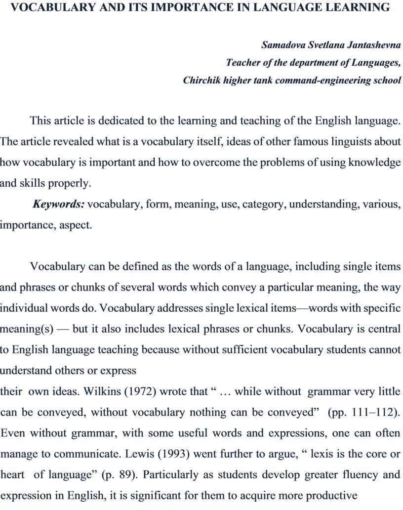 VOCABULARY AND ITS IMPORTANCE IN LANGUAGE LEARNING