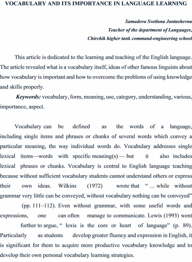 VOCABULARY AND ITS IMPORTANCE IN LANGUAGE LEARNING