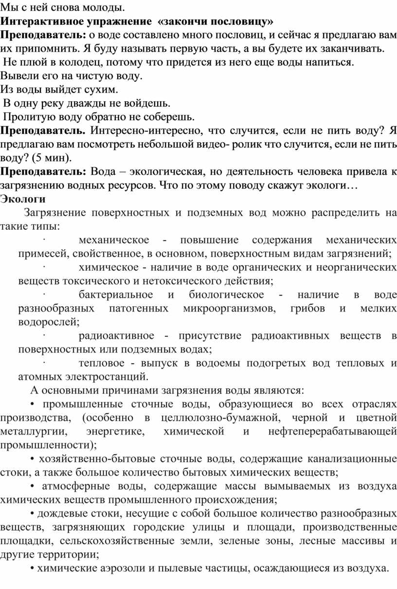 Преподаватель: Вода – экологическая, но деятельность человека привела к загрязнению водных ресурсов. Что по этому поводу скажут экологи…