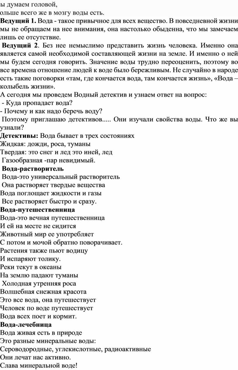 Поэтому приглашаю детективов..... Они изучали свойства воды. Что же вы узнали?