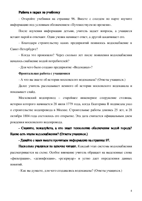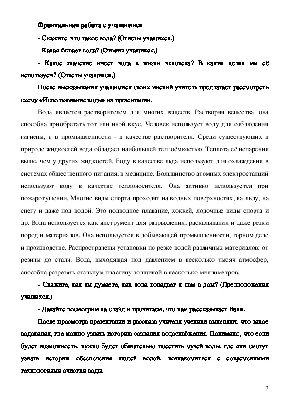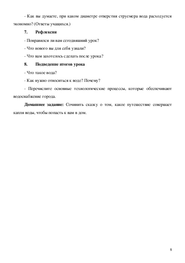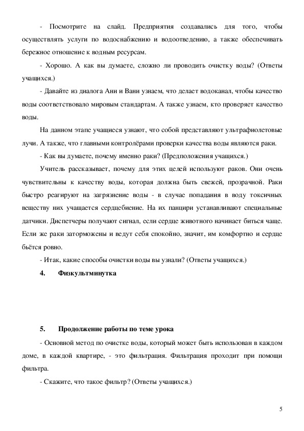водоснабжения города и значении очистки воды для жизнедеятельности человека;