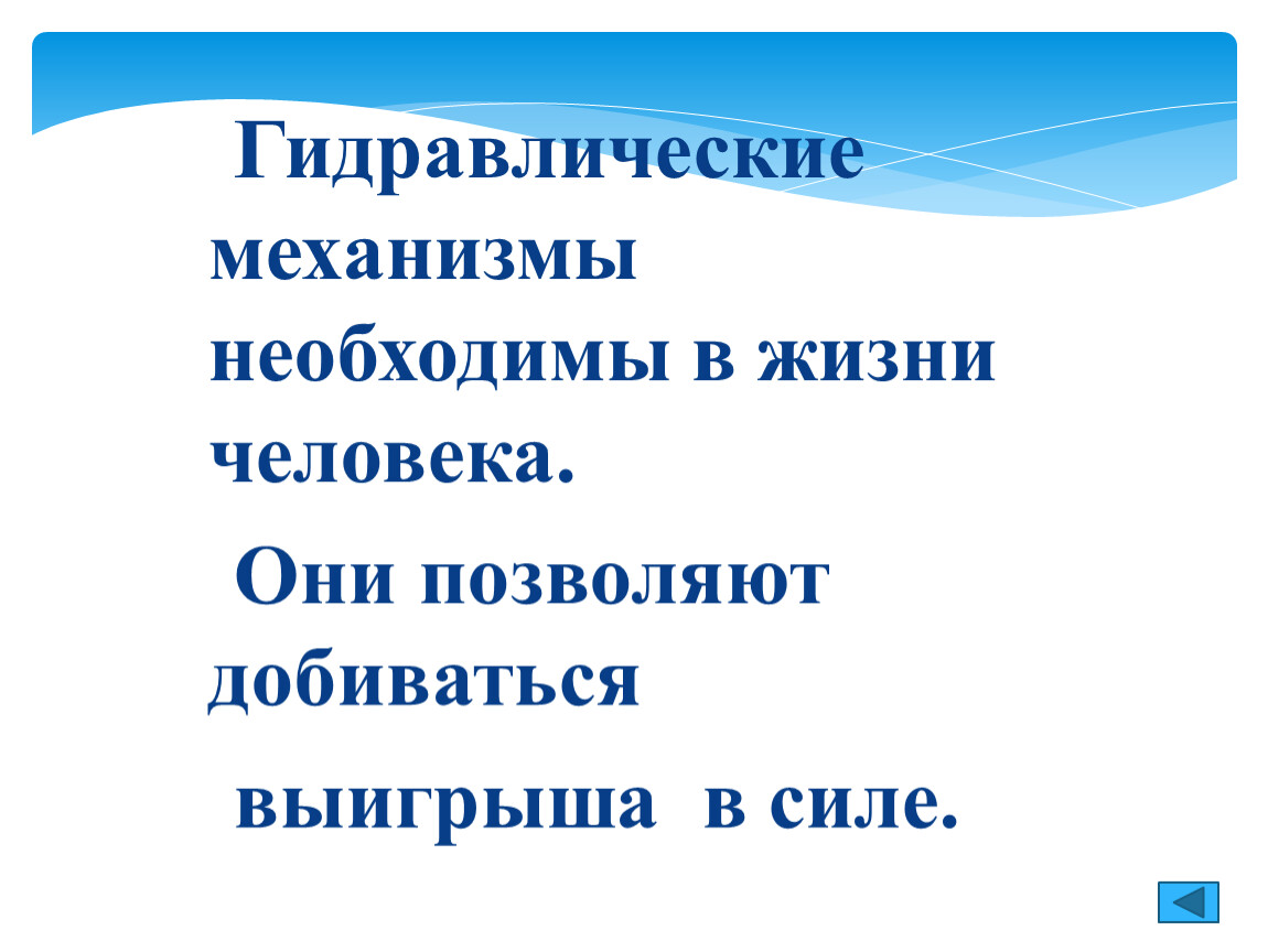 Гидравлический пресс – устройство, позволяющее получить большой выигрыш в силе, прилагая незначительные усилия