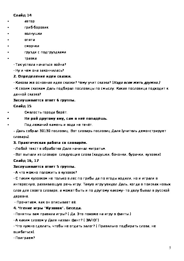 Материалы и оборудование: Словари Даля, его портрет, модели кузовка, рисунки