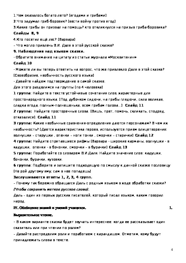 Заслушиваются ответы 1, 2, 3, 4 групп.