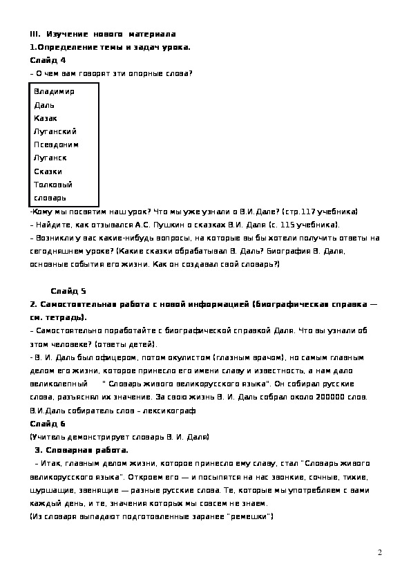 – Самостоятельно поработайте с биографической справкой Даля. Что вы узнали об