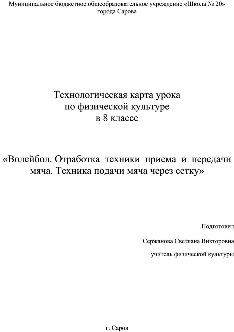 Муниципальное бюджетное общеобразовательное учреждение «Школа № 20» города Сарова