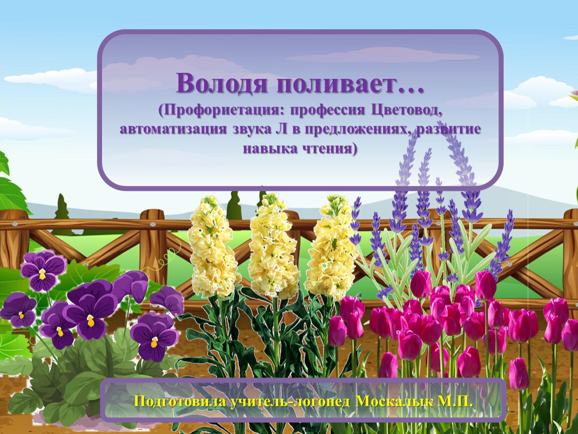 (Профориетация: профессия Цветовод, автоматизация звука Л в предложениях, развитие навыка чтения)