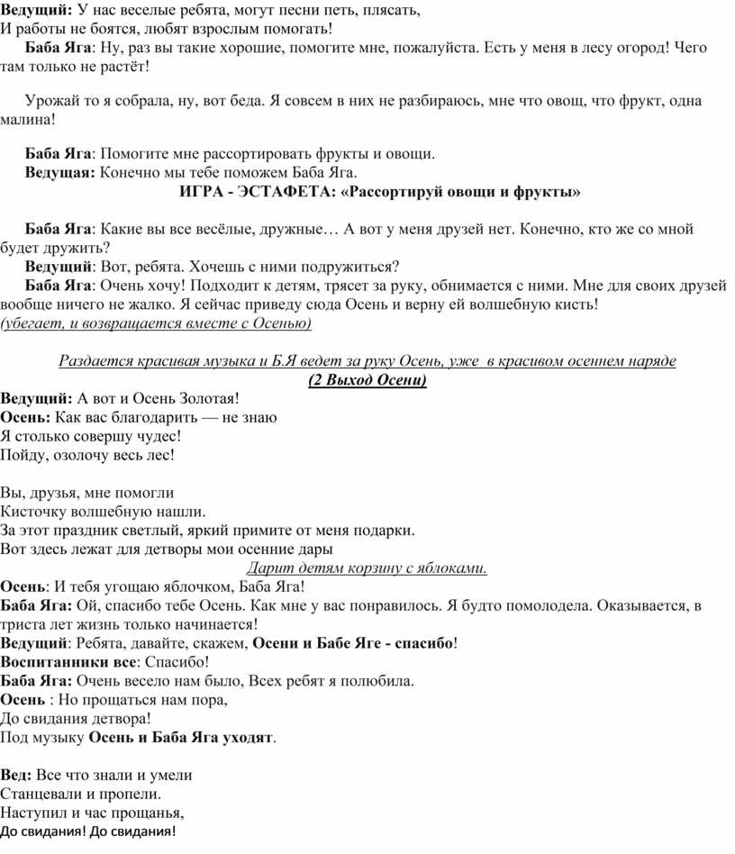 Ведущий: Ребята, давайте, скажем, Осени и Бабе Яге - спасибо!