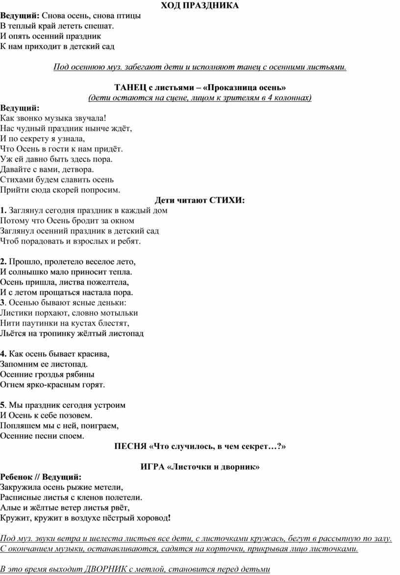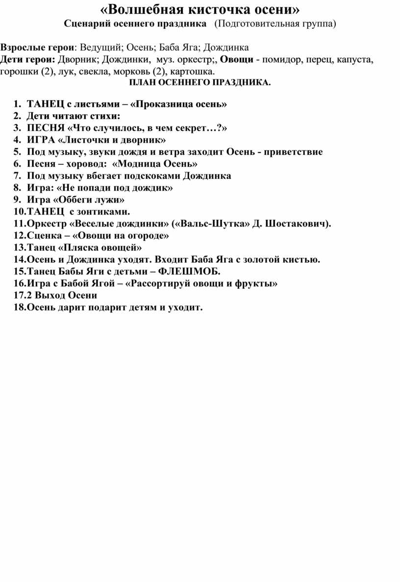 ПЛАН ОСЕННЕГО ПРАЗДНИКА.