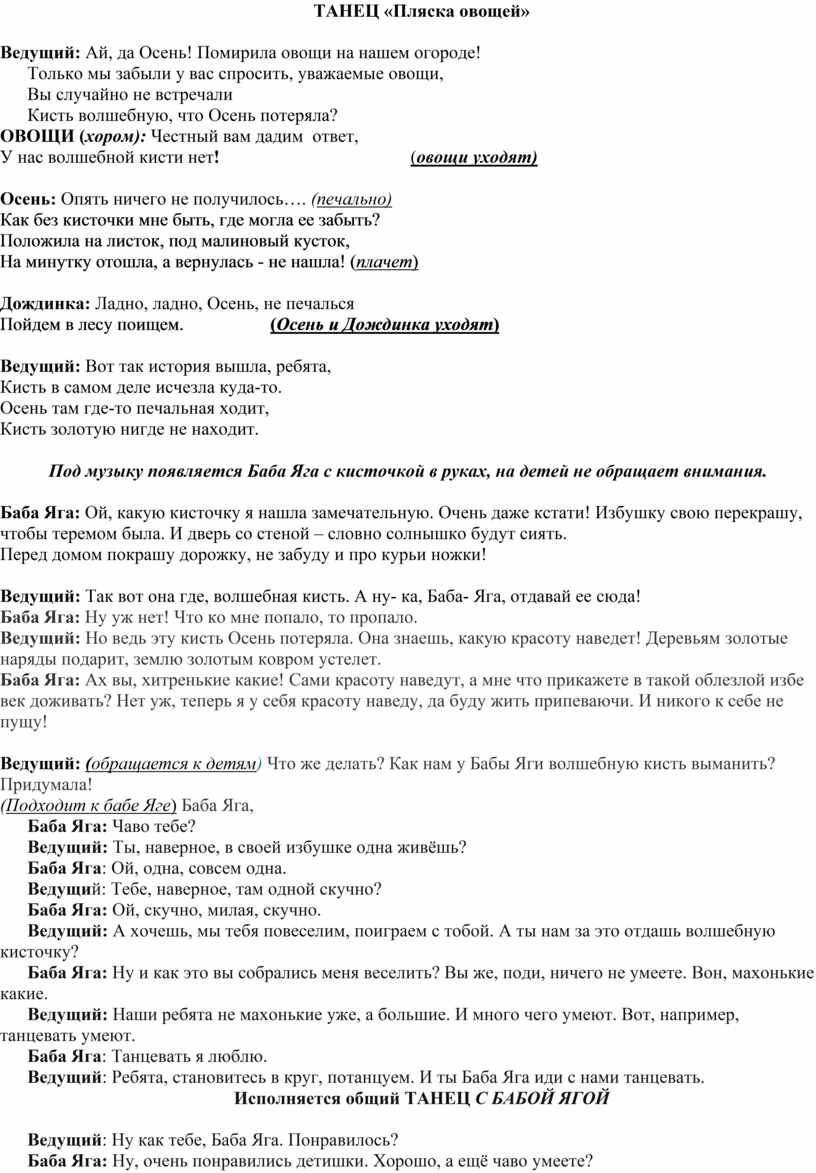 14. Осень и Дождинка уходят. Входит Баба Яга с золотой кистью.