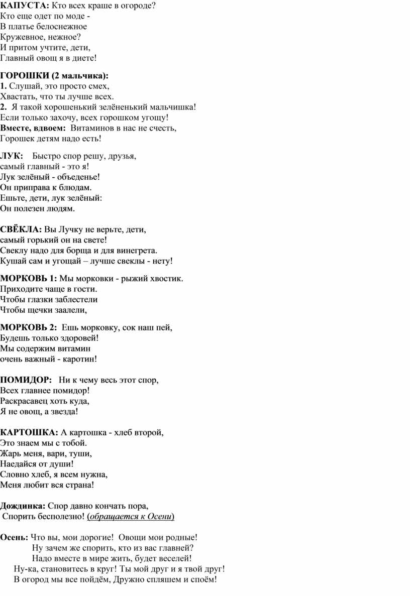 Ведущий: Ай, да Осень! Помирила овощи на нашем огороде!