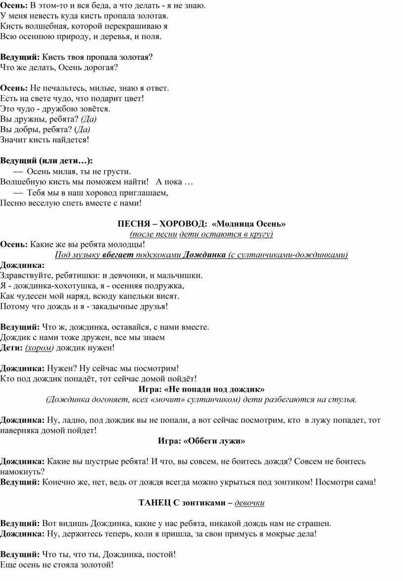Ведущий: Но ведь эту кисть Осень потеряла. Она знаешь, какую красоту наведет! Деревьям золотые наряды подарит, землю золотым ковром устелет.