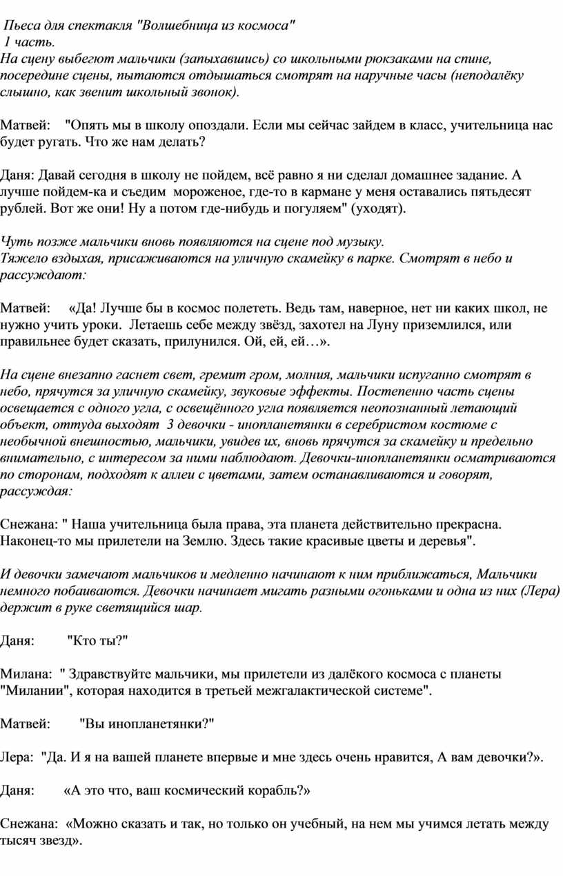 Пьеса для спектакля "Волшебница из космоса"