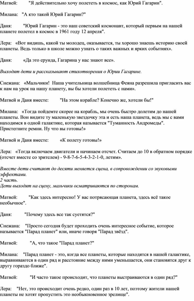 Лера: «Вот видишь, какой ты молодец, оказывается, ты хорошо знаешь историю своей планеты. Ведь только в школе можно узнать о таких важных и ярких событиях».