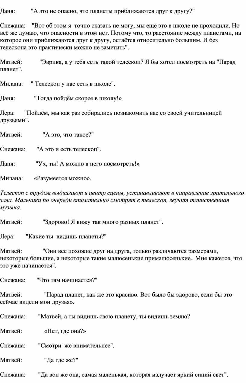 Лера: "Матвей, а тебе действительно интересно, когда мы рассказываем о космосе?"