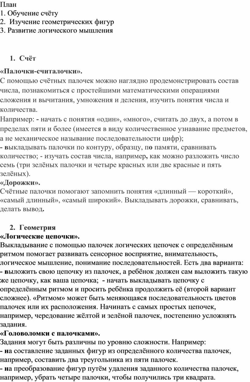 Счётные палочки можно использовать для логических игр, которые развивают мышление, умение составлять фигуры и преобразовывать их. Такие игры могут быть связаны с выкладыванием фигур, преобразованием фигур или решением загадок.