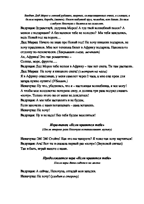Нехочуха: Уф! Не хочу я в эту Африку! Там жара! Дедушка Мороз, не