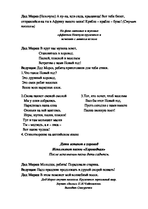 Мороза! Не хочу я никаких ваших праздников, и хороводов – не хочу!Ведущая: Да где это видано, чтобы самого Деда Мороза кто – то заколдовал?