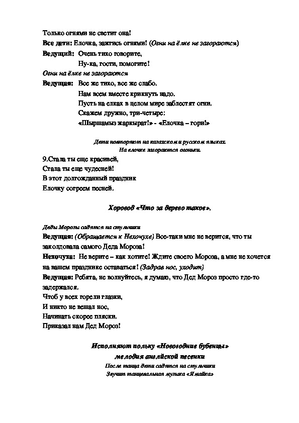 «Шыршамыз жаркырат!» «Елочка – гори!»