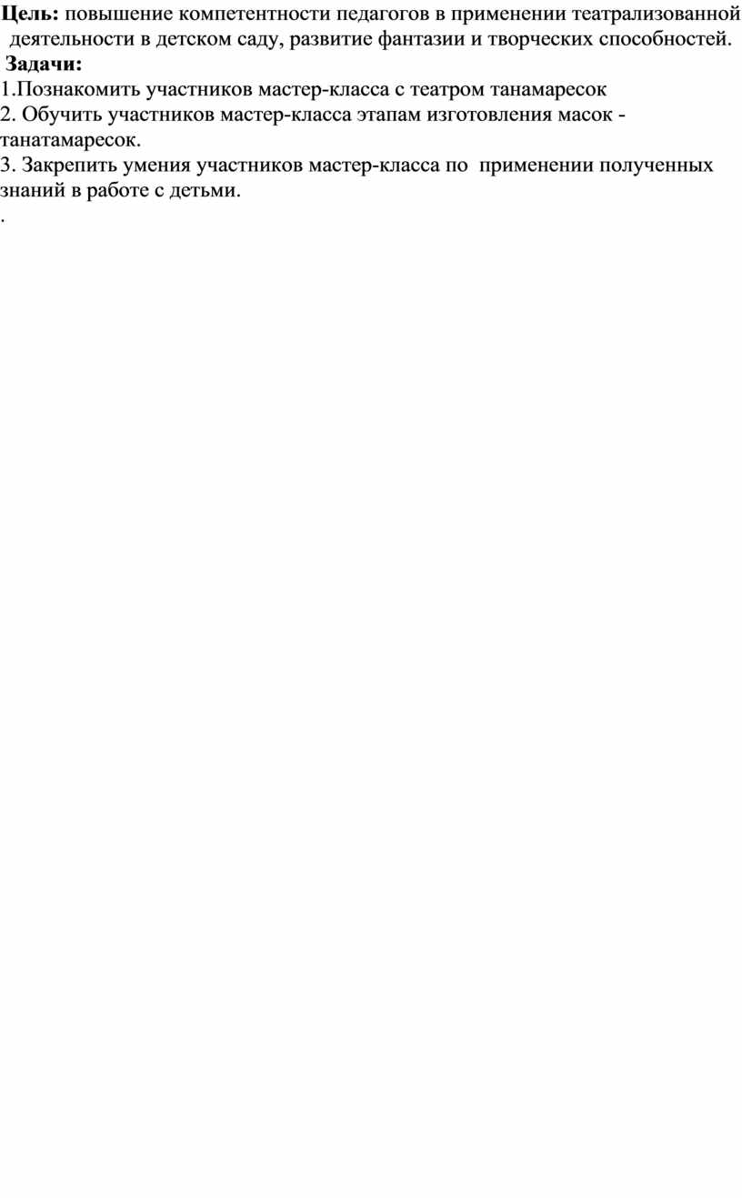 3. Закрепить умения участников мастер-класса по применении полученных знаний в работе с детьми.