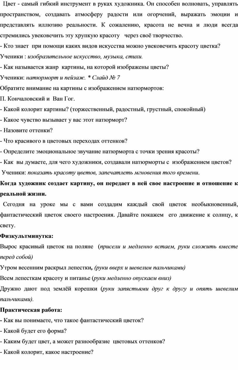 Сегодня на уроке мы с вами создадим каждый свой цветок необыкновенный, фантастический цветок своего настроения. Давайте покажем его движение к солнцу, к свету.