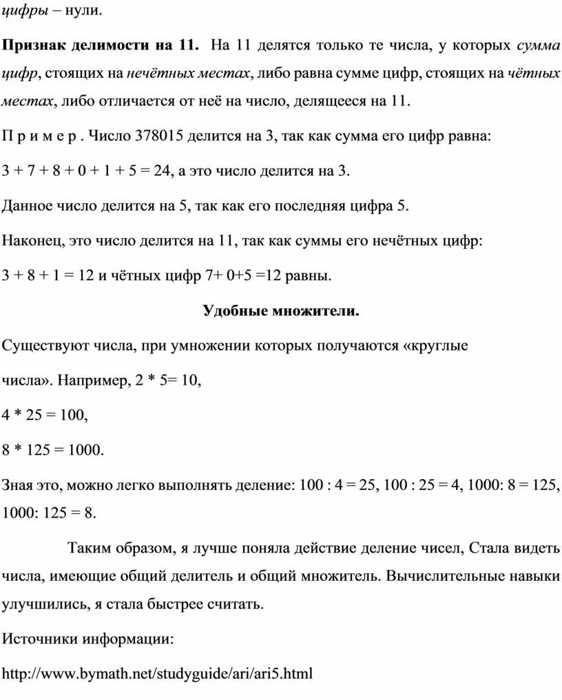 Таким образом, я лучше поняла действие деление чисел, Стала видеть числа, имеющие общий делитель и общий множитель. Вычислительные навыки улучшились, я стала быстрее считать.
