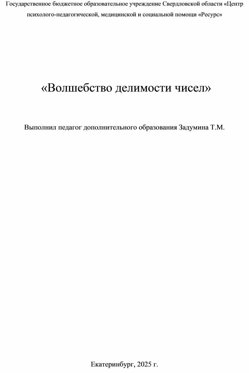 Государственное бюджетное образовательное учреждение Свердловской области «Центр психолого-педагогической, медицинской и социальной помощи «Ресурс»