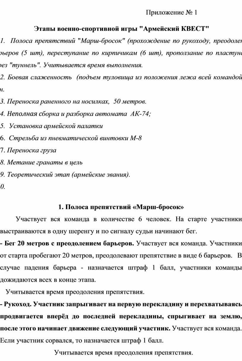 Этапы военно-спортивной игры "Армейский КВЕСТ"