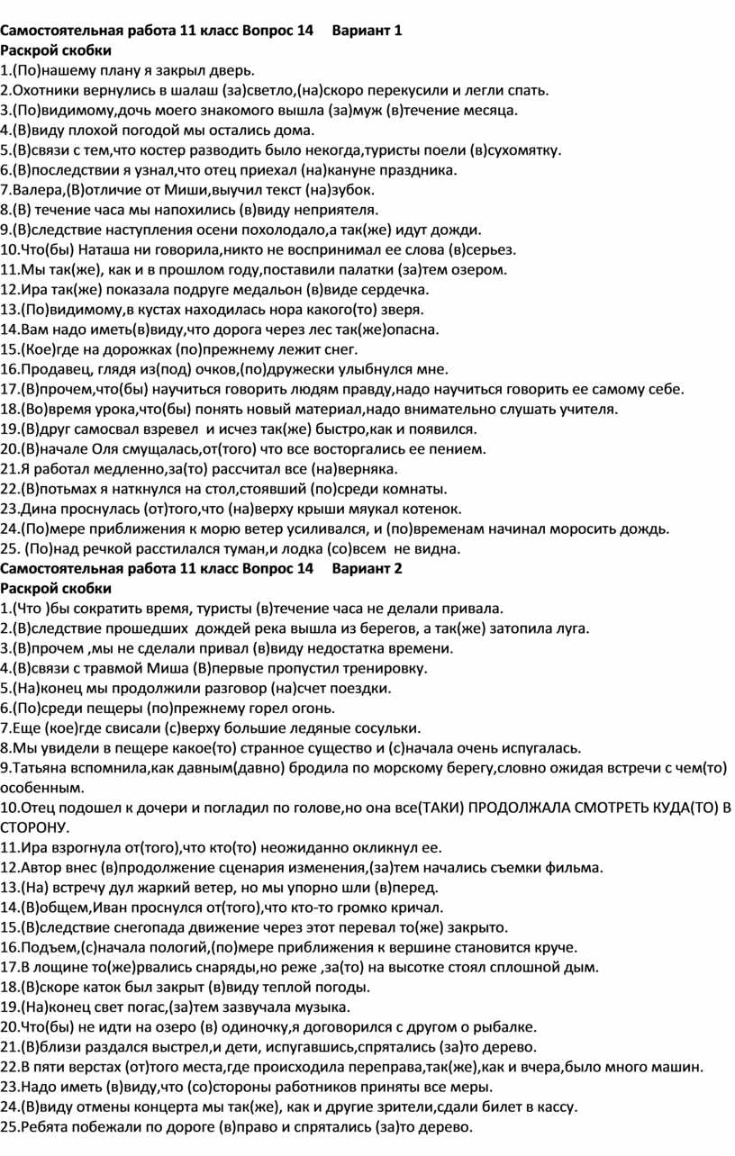 Самостоятельная работа 11 класс Вопрос 14 Вариант 1