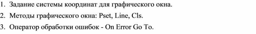 58. Методы графического окна: Pset, Line, Cls.