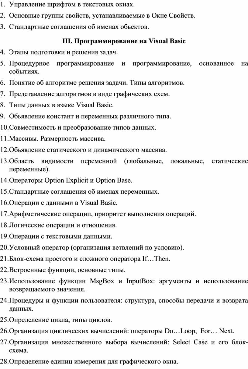 III. Программирование на Visual Basic