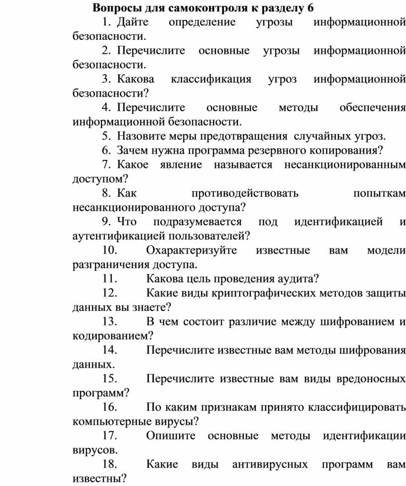 4. Перечислите основные методы обеспечения информационной безопасности.