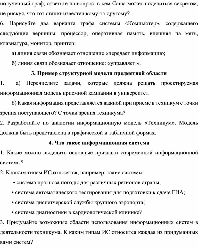 3. Придумайте возможные области использования информационных систем в деятельности техникума. К каким типам ИС относится каждая из придуманных вами систем?