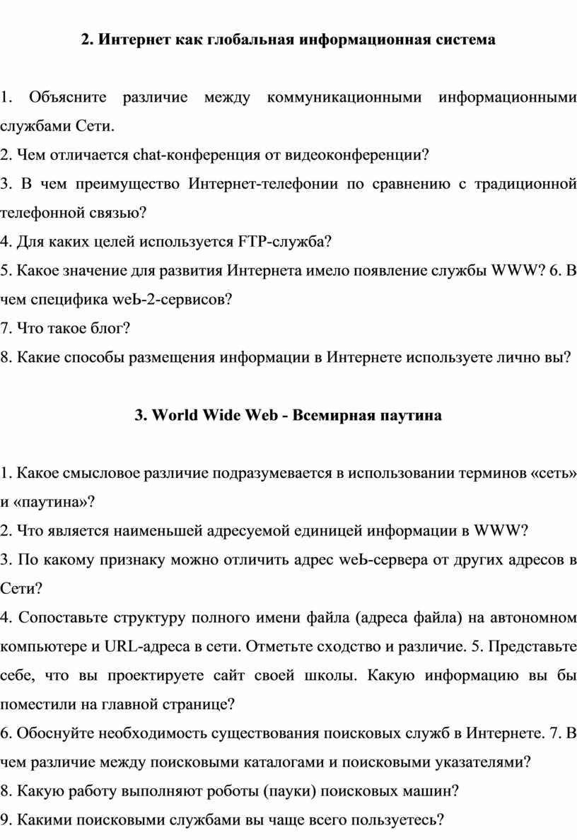 5. Какое значение для развития Интернета имело появление службы WWW? 6. В чем специфика wеЬ-2-сервисов?
