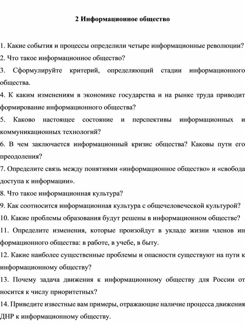 4. К каким изменениям в экономике государства и на рынке труда приводит формирование информационного общества?