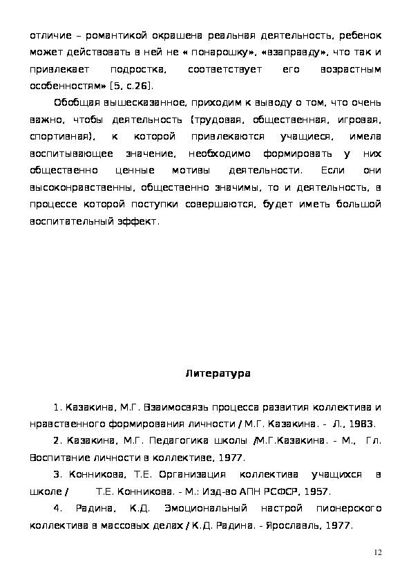 1. Казакина, М.Г. Взаимосвязь процесса развития коллектива и