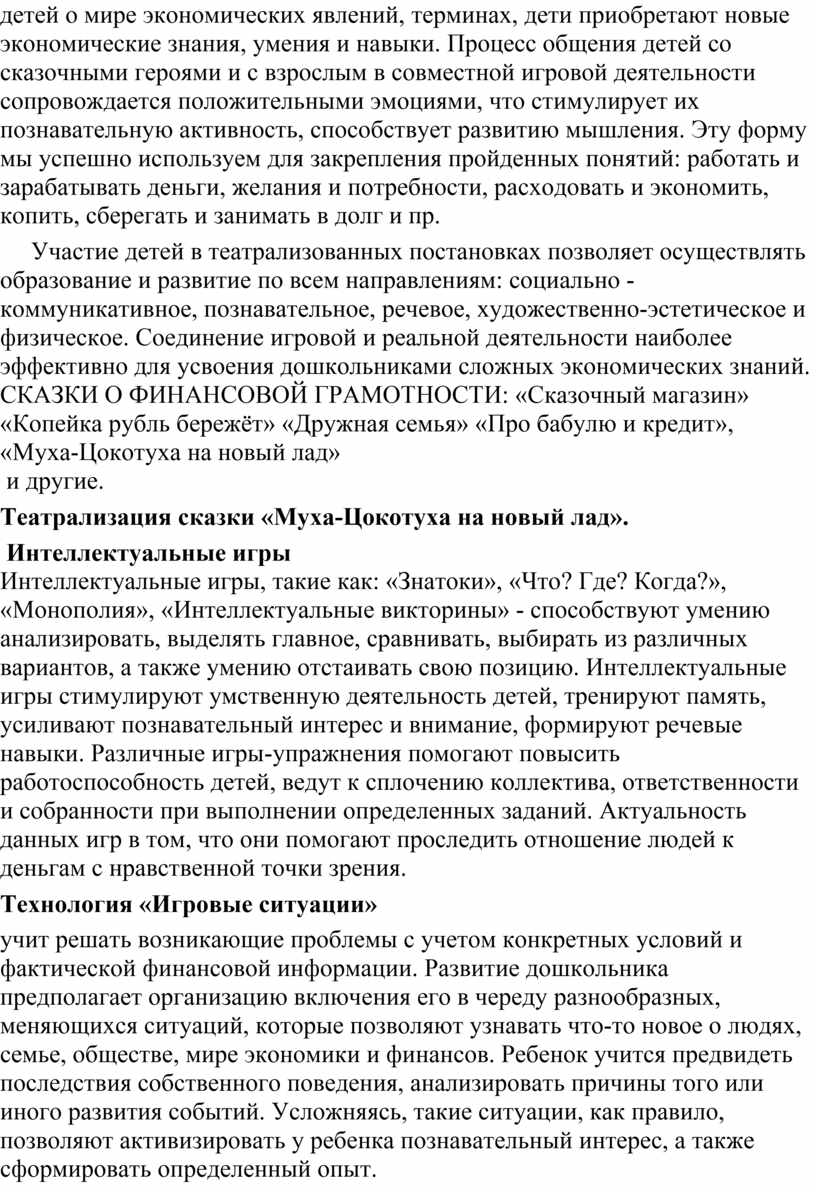 учит решать возникающие проблемы с учетом конкретных условий и фактической финансовой информации. Развитие дошкольника предполагает организацию включения его в череду разнообразных, меняющихся ситуаций, которые позволяют узнавать что-то новое о людях, семье, обществе, мире экономики и финансов. Ребенок учится предвидеть последствия собственного поведения, анализировать причины того или иного развития событий. Усложняясь, такие ситуации, как правило, позволяют активизировать у ребенка познавательный интерес, а также сформировать определенный опыт.