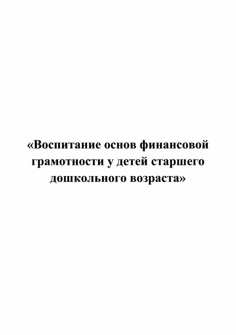 «Воспитание основ финансовой грамотности у детей старшего дошкольного возраста»