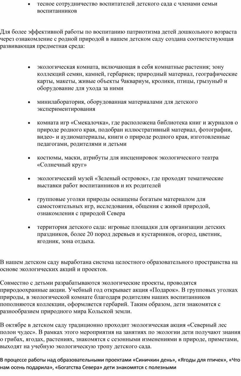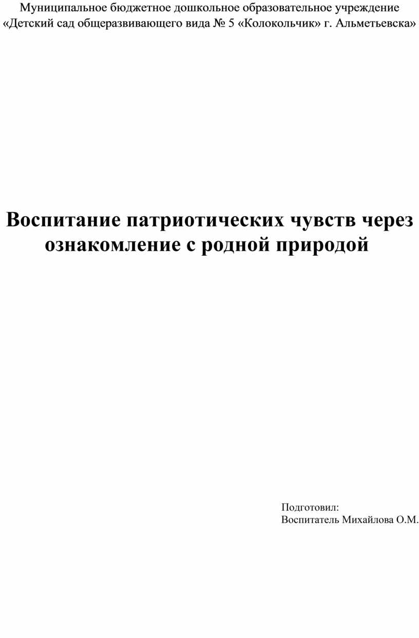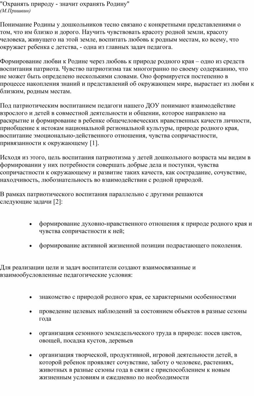 патриотизма детей дошкольного возраста через ознакомление с родной природой в