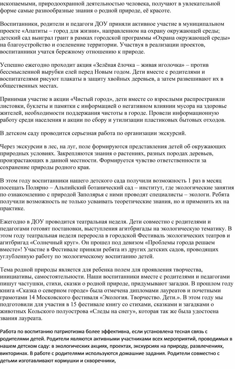 углубленную работу по экологическому воспитанию детей.