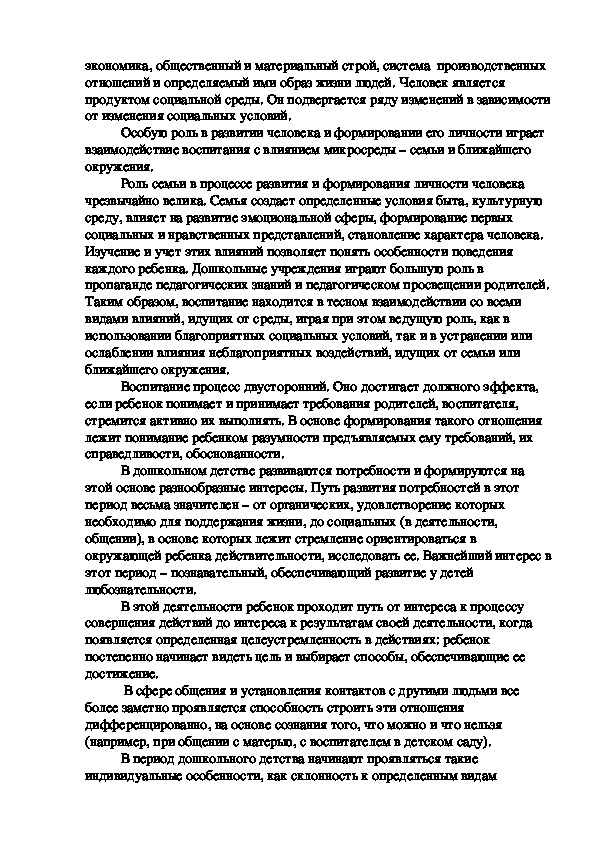 среду, влияет на развитие эмоциональной сферы, формирование первых