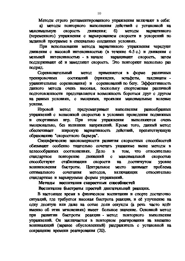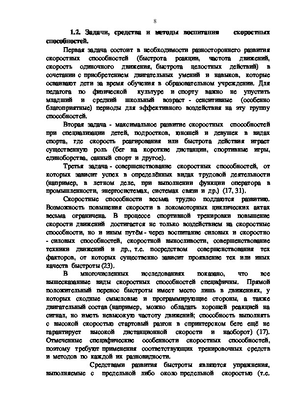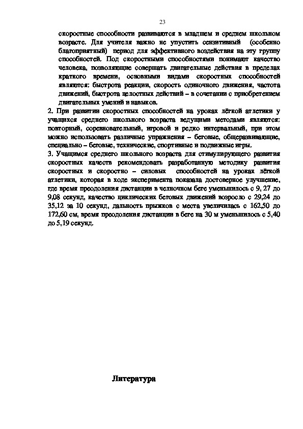 «Воспитание скоростных способностей в среднем школьном возрасте на