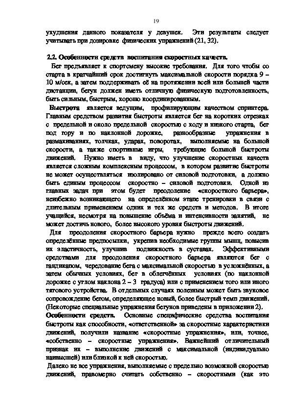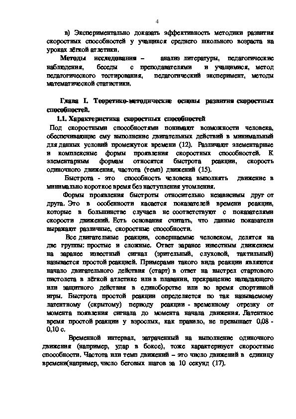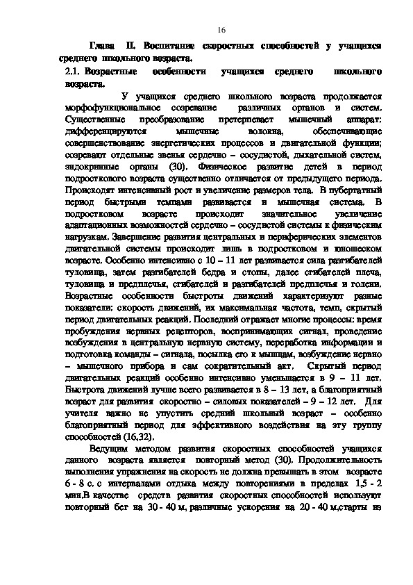 Глава II. Воспитание скоростных способностей у учащихся среднего