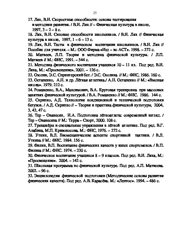 17. Лях, В.И. Скоростные способности: основы тестирования