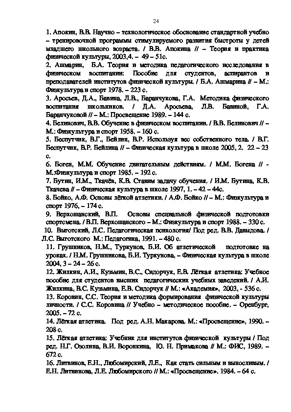 23. Остапенко, А.Н. и др. Лёгкая атлетика./ А.Н. Остапенко // М.: «Высшая