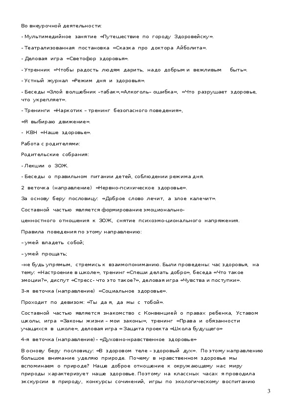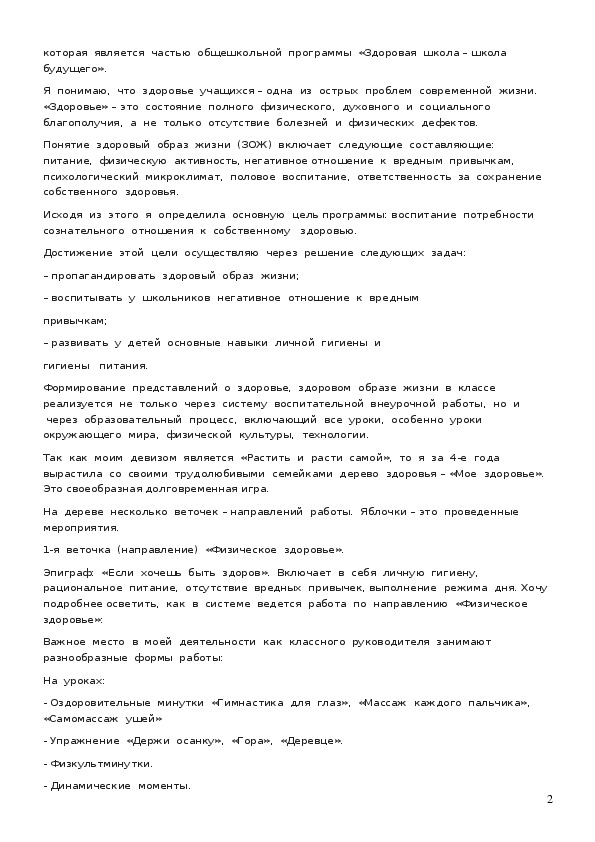 Формирование представлений о здоровье, здоровом образе жизни в классе