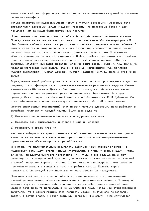 природы характеризует наше здоровье. Поэтому на классных часах я проводила