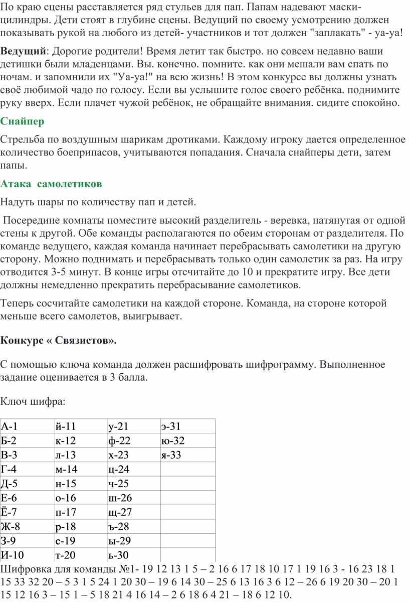 Шифровка для команды №2- 15 1 – 1 31 18 16 5 18 16 14 6 – 5 6 19 33 20 30 – 19 1 14 16 13 7 20 16 3 – 16 5 10 15 – 20 1 15 12 – 16 23 18 1 15 1 – 5 3 1 5 24 1 20 30 – 17 33 20 30 – 25 6 13 16 3 6 12 – 20 18 10 – 19 16 2 1 12 10.